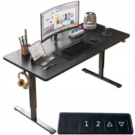 Descoperă biroul electric reglabil pe înălțime 120x60 cm, perfect pentru confortul tău zilnic, fie că lucrezi sau te joci! Reglarea simplă a înălțimii (72-118 cm) îți permite să adopți o postură sănătoasă, fie că stai jos sau în picioare. Cu o suprafață generoasă de 120x60 cm, ai suficient spațiu pentru monitor, tastatură și accesorii de gaming sau pentru documente și laptop. Designul negru modern se potrivește perfect oricărui interior, aducând un plus de stil și profesionalism. Alege acest birou pentru un mediu de lucru și joacă confortabil și ergonomic!