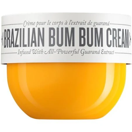 Descoperă Brazilian Bum Bum Cream, crema de corp cu absorbție rapidă care îți transformă pielea uscată într-una catifelată și netedă. Ingredientul secret, guarana din Amazon, aduce o doză puternică de cafeină, în timp ce untul cupuaçu, acai și uleiul de cocos îți oferă hidratare și un aspect luminos. Particulele strălucitoare adaugă un plus de luminozitate, iar parfumul de fistic și caramel îți încântă simțurile. Aplic-o prin masaj circular pentru o absorbție eficientă și stimulează-ți circulația, fie că o folosești pe fese, abdomen, brațe sau întregul corp. Formula vegană pune natura în slujba frumuseții tale.