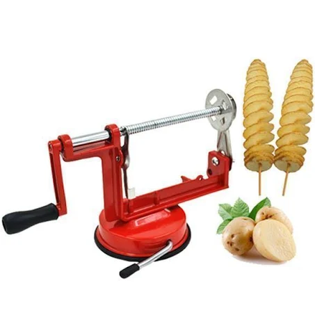 Descoperă un nou mod de a savura cartofii cu aparatul manual pentru tăiat cartofi în spirală! Cu lame din inox de înaltă calitate, acest aparat îți transformă cartofii într-un stil frigărui, perfect pentru prăjit sau așezat pe grill. Sistemul de stabilizare cu ventuză îl face ușor de folosit și de întreținut, iar designul său atrăgător în culoarea roșie adaugă un strop de veselie bucătăriei tale. Simplu și eficient, îți oferă posibilitatea să explorezi noi rețete delicioase, economisind timp și efort.