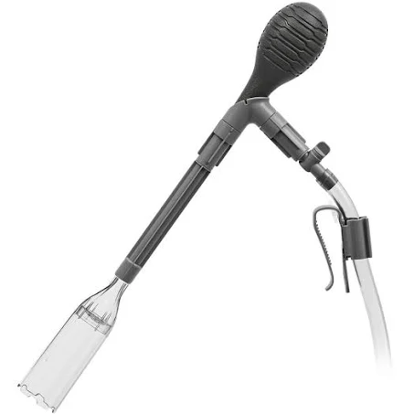 Un aspirator electric pentru acvariu este, de fapt, un tub de plastic de circa 5 cm în diametru, care are fixat la unul dintre capete un alt tub sifonat. Poți folosi aspirația, la o distanță de aproximativ 5 cm de substratul acvariului, pentru a-l curăța săptămânal.