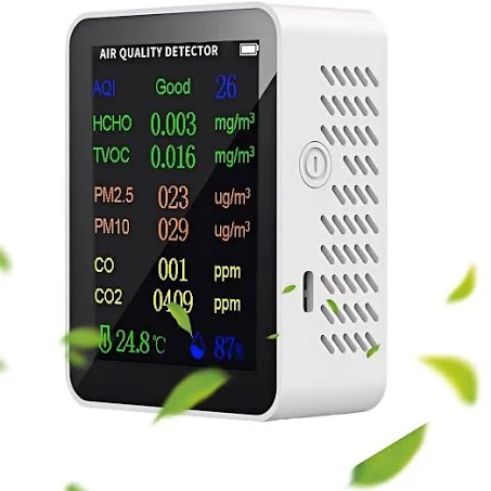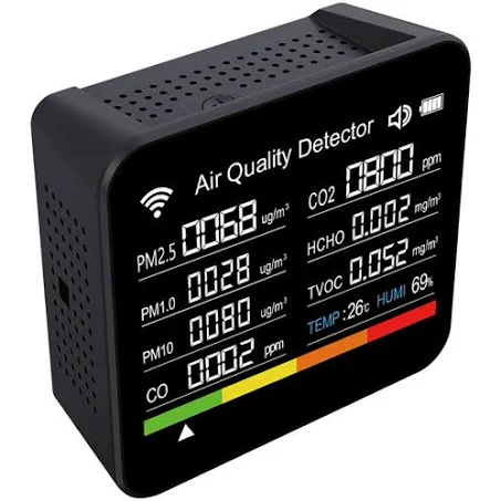 Detectorul de calitate a aerului 10 în 1 îți permite să monitorizezi eficient mediul interior, măsurând CO2, monoxid de carbon, formaldehidă, poluanți organici, PM2.5, PM10, temperatură și umiditate. Cu tehnologia sa avansată și senzorul precis, afișează datele pe un ecran TFT color de 5,5 inchi. Alarma sonoră și luminoasă te avertizează la detectarea poluanților nocivi, iar bateria de 1200 mAh îți oferă până la 6 ore de autonomie. Designul portabil face acest dispozitiv perfect pentru a-l folosi acasă sau la locul de muncă, ajutându-te să îmbunătățești calitatea aerului din jurul tău.