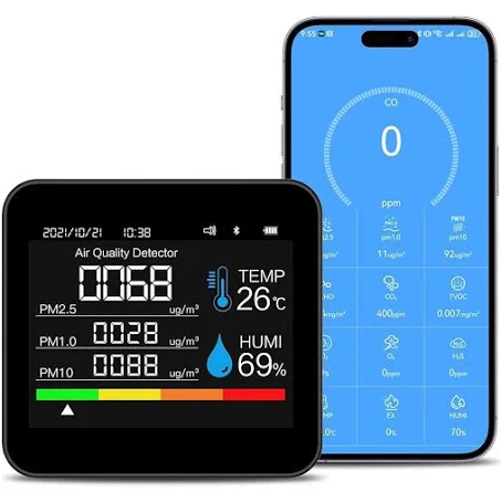 Monitorul portabil 9-in-1 pentru calitatea aerului îți oferă o imagine detaliată asupra mediului tău interior, detectând PM2.5, PM1.0, PM10, CO2, CO, TVOC, HCHO, temperatura și umiditatea. Ideal pentru acasă, birou sau școală, acesta te ajută să menții un mediu sănătos prin actualizări în timp real, permițându-ți să iei decizii informate despre ventilație și filtrare. Ușor de configurat și utilizat, îți protejează sănătatea identificând substanțe nocive, fiind perfect pentru a-ți asigura un spațiu curat și sigur.