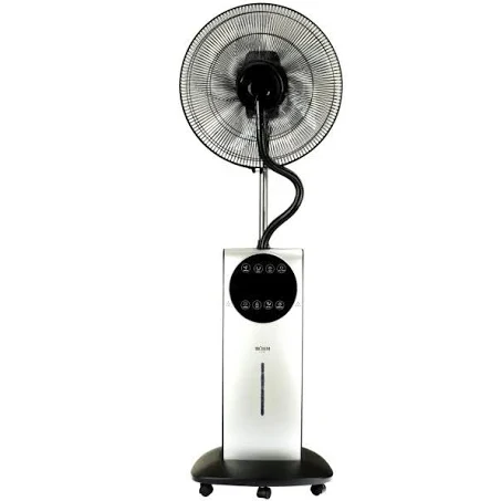 Funcțiile ventilatorului de terasă cu pulverizare sunt cea de oscilație a mișcărilor și a vitezei, de umidificare pentru a oferi un nivel de umiditate sănătos, telecomanda prin care se pot seta de la distanță opțiunile de reglaj. De asemenea, are funcția de avertizare când rezervorul este gol și funcția de moduri prestabilite: normal- viteză constantă, natural- viteză precum cea a vântului și somn- viteză minimă.